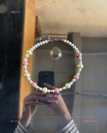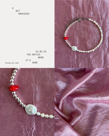 we tried to emphasize this with some secrecy - hiding everything under pink hearts. the landing page also had a thing going where we tempted the customer with a big add to cart button, while also showing off our first ever necklaces.